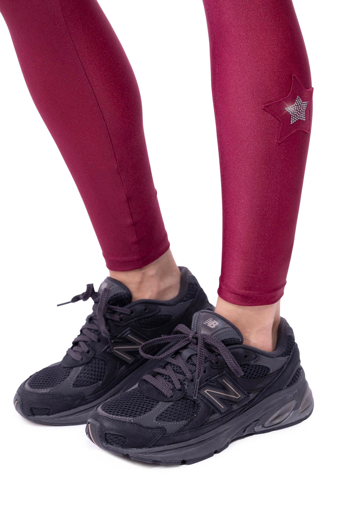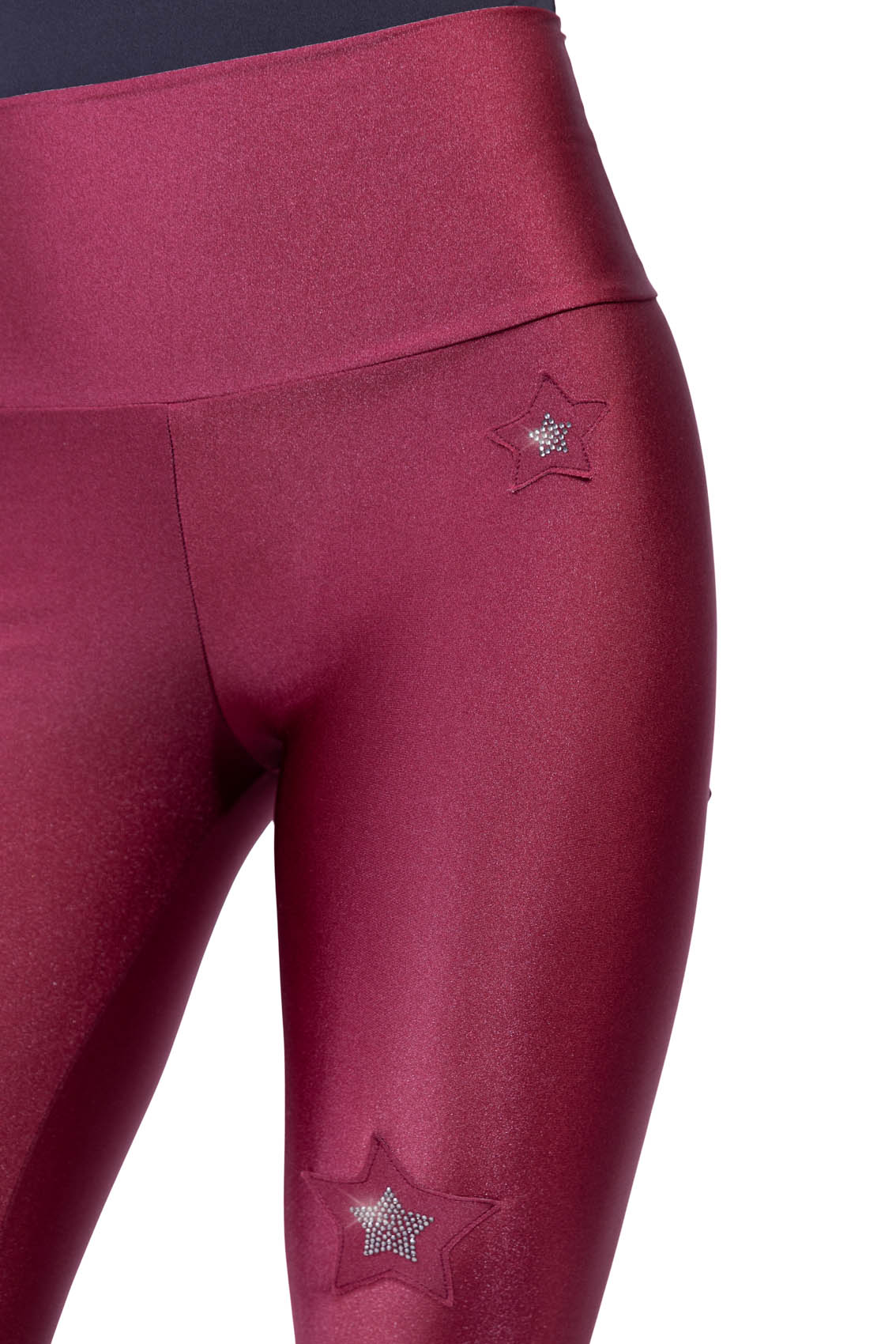 La lycra setata dona un effetto glow unico, mentre le stelle applicate a mano, elemento iconico de L’Equilibriste, impreziosiscono la gamba con un dettaglio sartoriale distintivo. La vita alta modellante garantisce comfort e sostegno, rendendo questi leggings perfetti per allenamento, tempo libero o outfit urban chic.