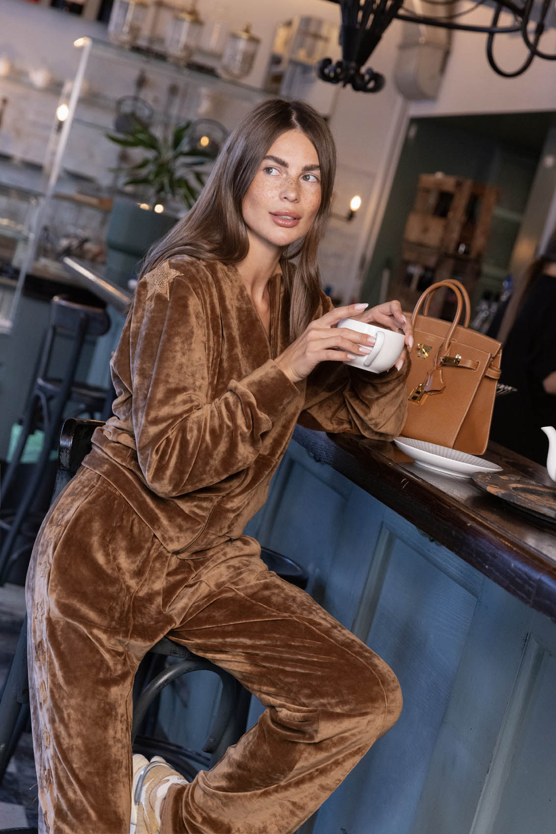 If you're looking for a comfortable and stylish option for your casual outfits, our velvet tracksuit is perfect for you. Suitable for sports and those busy days when you're unsure of what to wear!