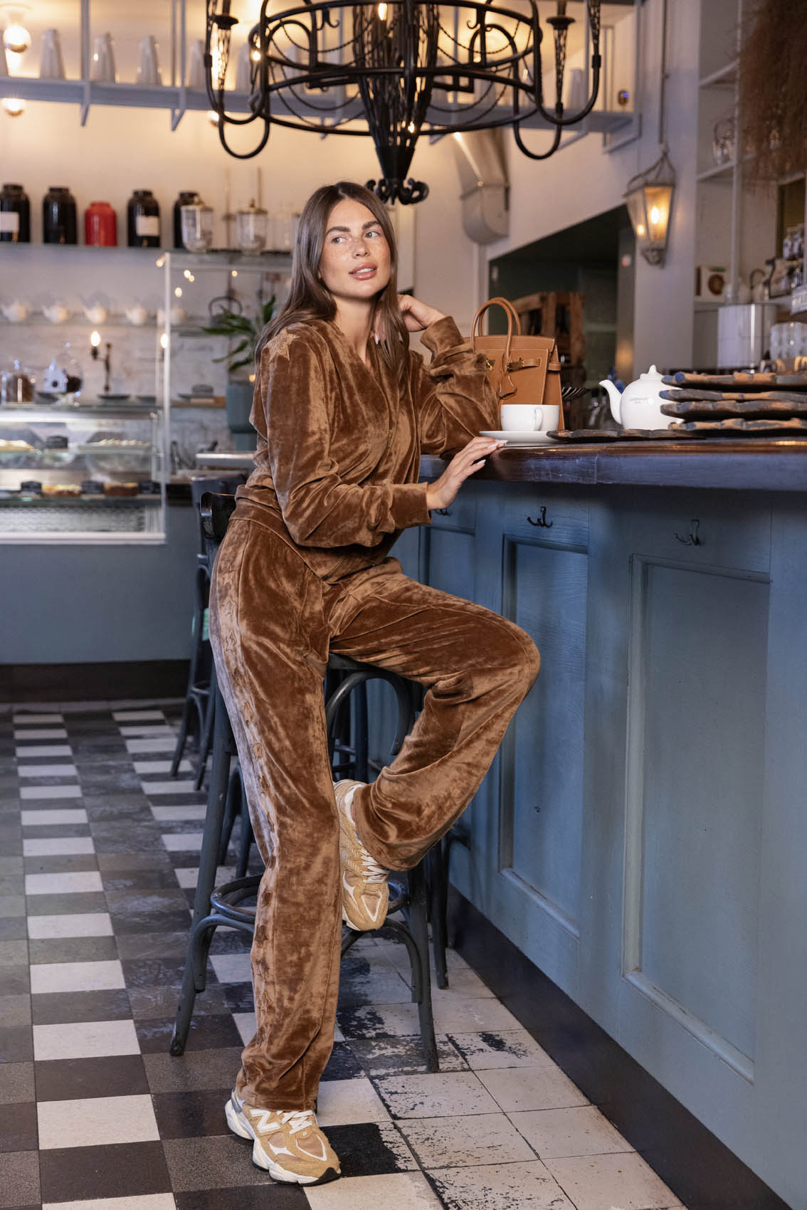 If you're looking for a comfortable and stylish option for your casual outfits, our velvet tracksuit is perfect for you. Suitable for sports and those busy days when you're unsure of what to wear!