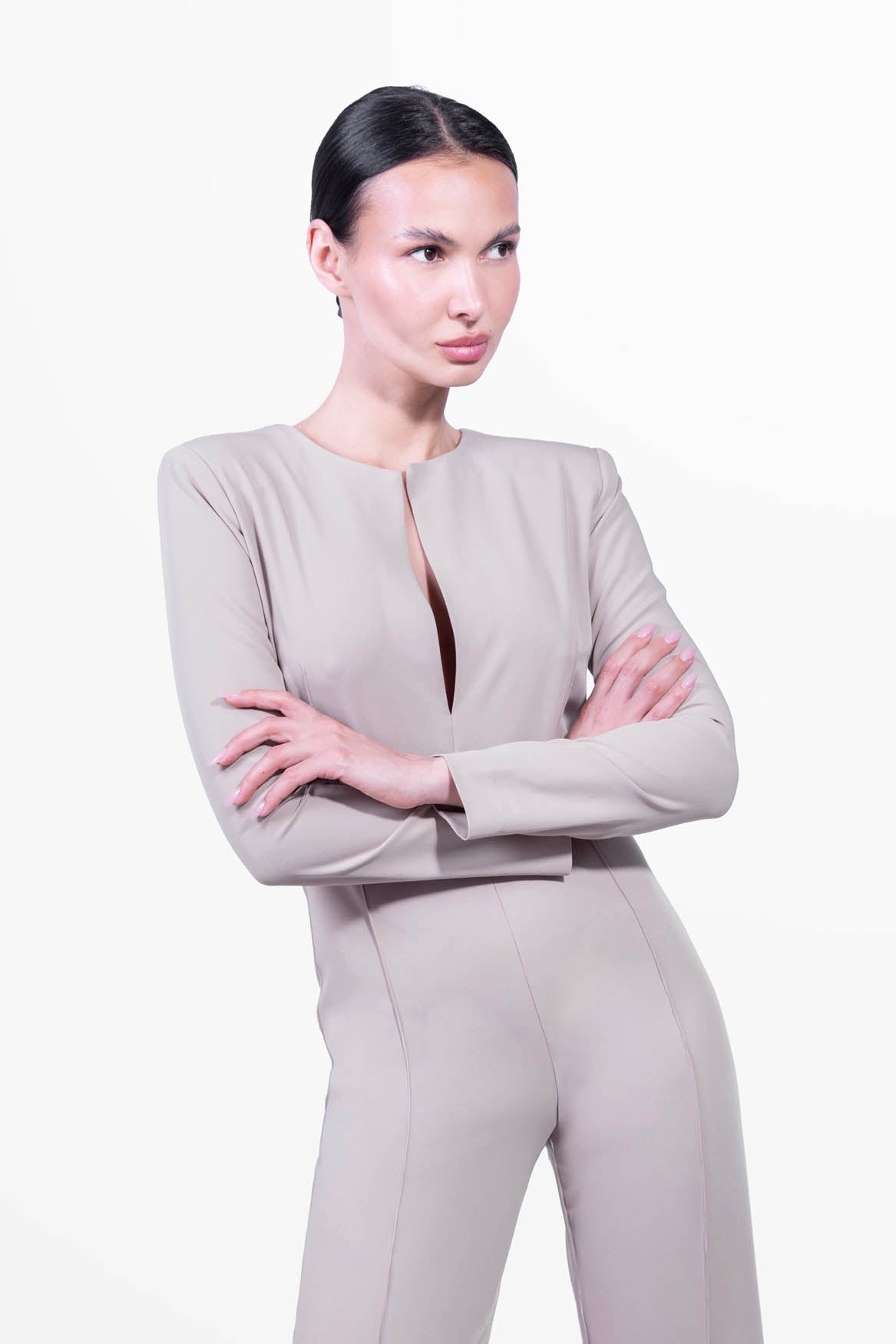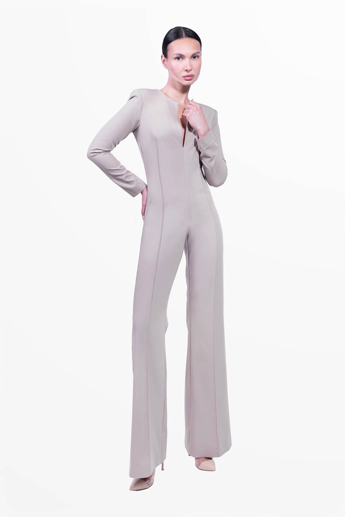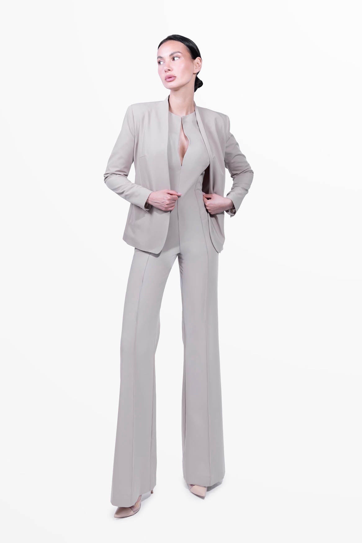 La combinaison Grace, délicatement ajustée à la taille et douce dans la partie basse avec son pantalon évasé, est une combinaison polyvalente qui convient à toutes les femmes de caractère.