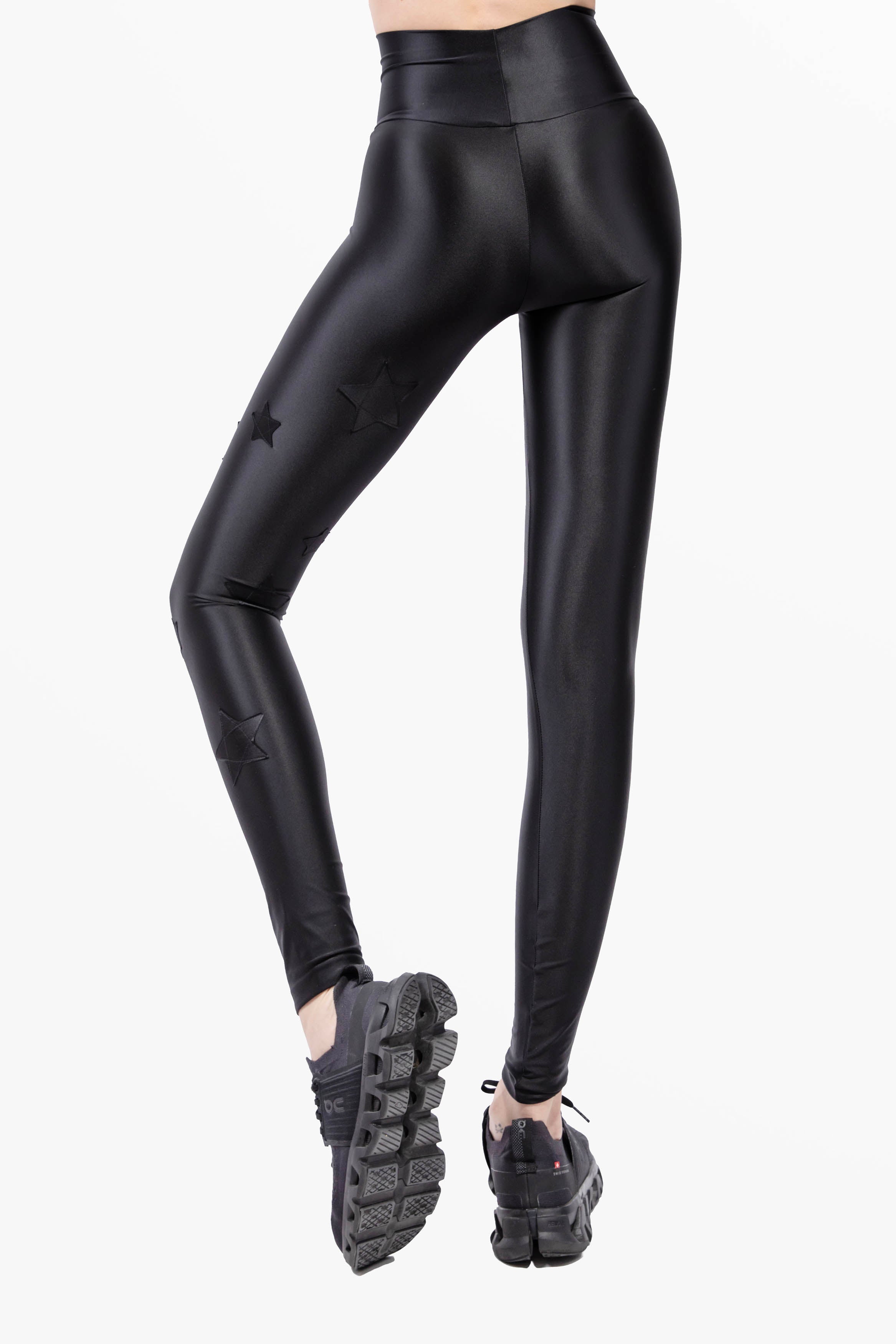 Preziosi leggings in lycra silk, baschina in vita, stelle applicate in lycra tono su tono.