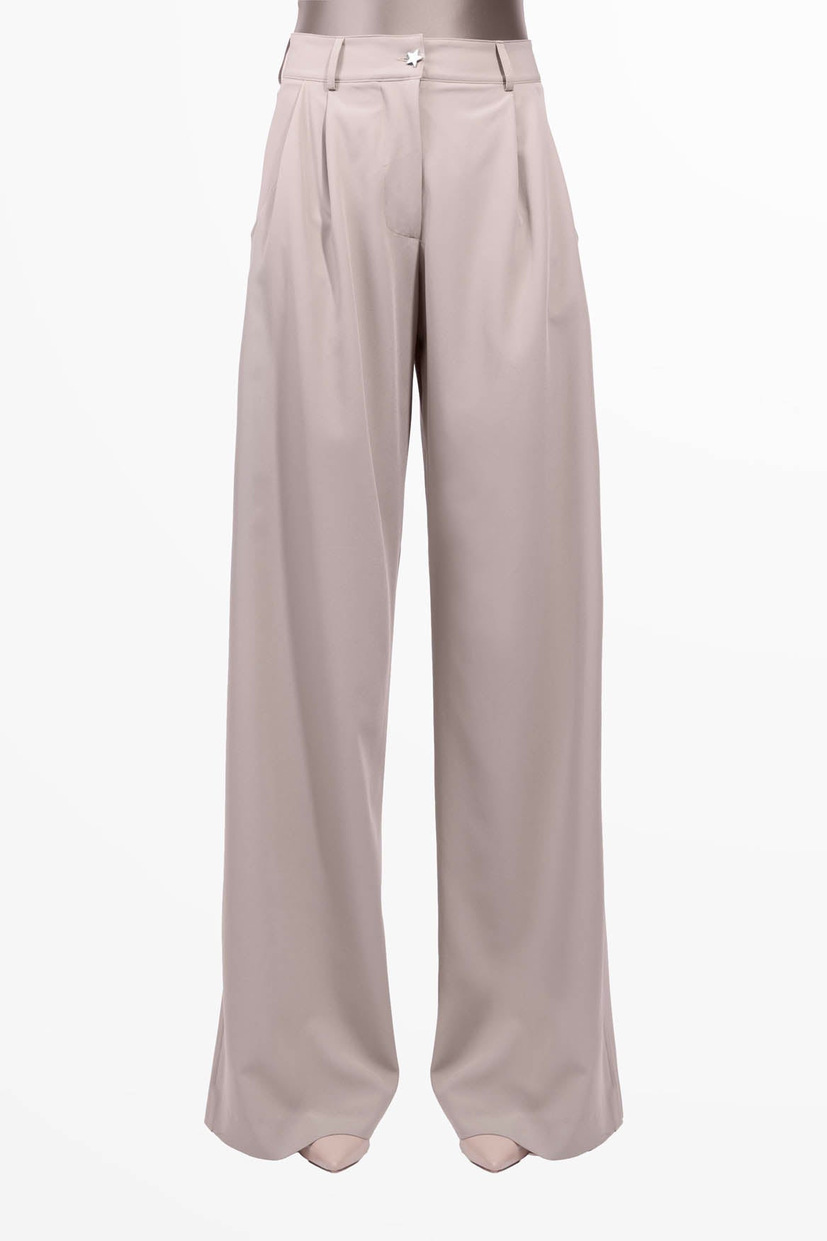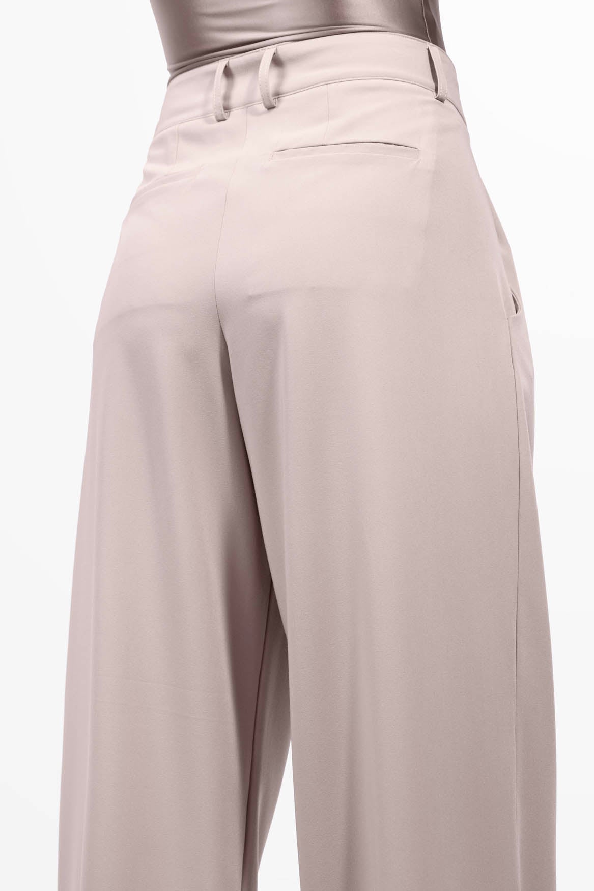 A soft trouser with a masculine style reinterpreted for women, with structured yet feminine lines, combining elegance and comfort, creating an androgynous and sophisticated look.